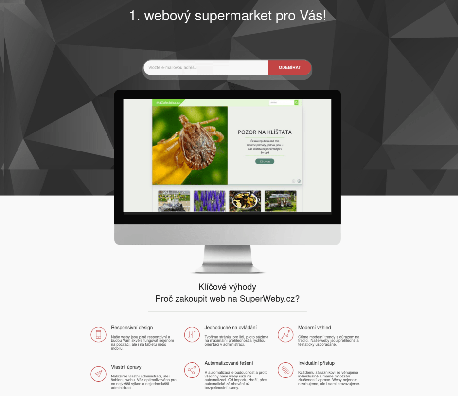 Nejvýraznější změnou v listopadu byl redesing webu SuperWeby.cz. Ač během posledních let přibylo mnoho funkcí, tak vzhled jako takový se během posledních 4 let prakticky nezměnil. Proto v souladu s aktuálními trendy, jsem vzhled upravil do podoby landing page, která odkazuje na další části webu jako je blog nebo e-shop webu na prodej.